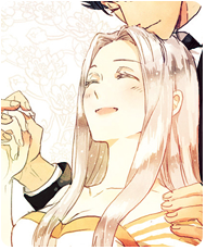- Волосы совсем не благородного серого цвета, что в зависимости от погоды (и сезона) стремятся как к белому цвету, так и к грязно-серому. Волосы короткие и прямые, самые длинные пряди едва ли касаются ключиц. Лишены всякой заботы, кроме как расчессывания. За прямой челкой пара ровно подстриженных прядей обрамляет лицо, когда Мина завязывает волосы в хвост.